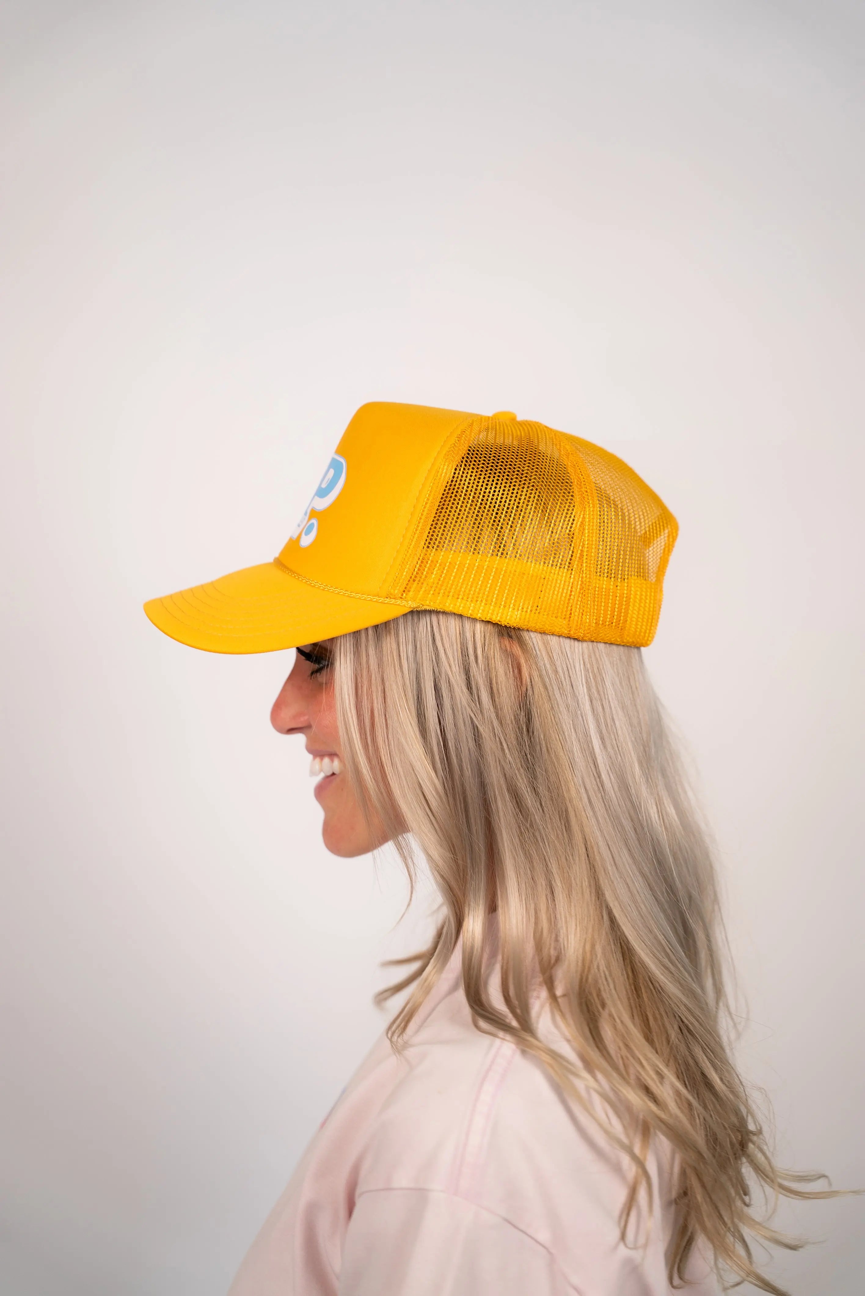 This Foam Trucker Hat is Gold. This is Micah's favorite.