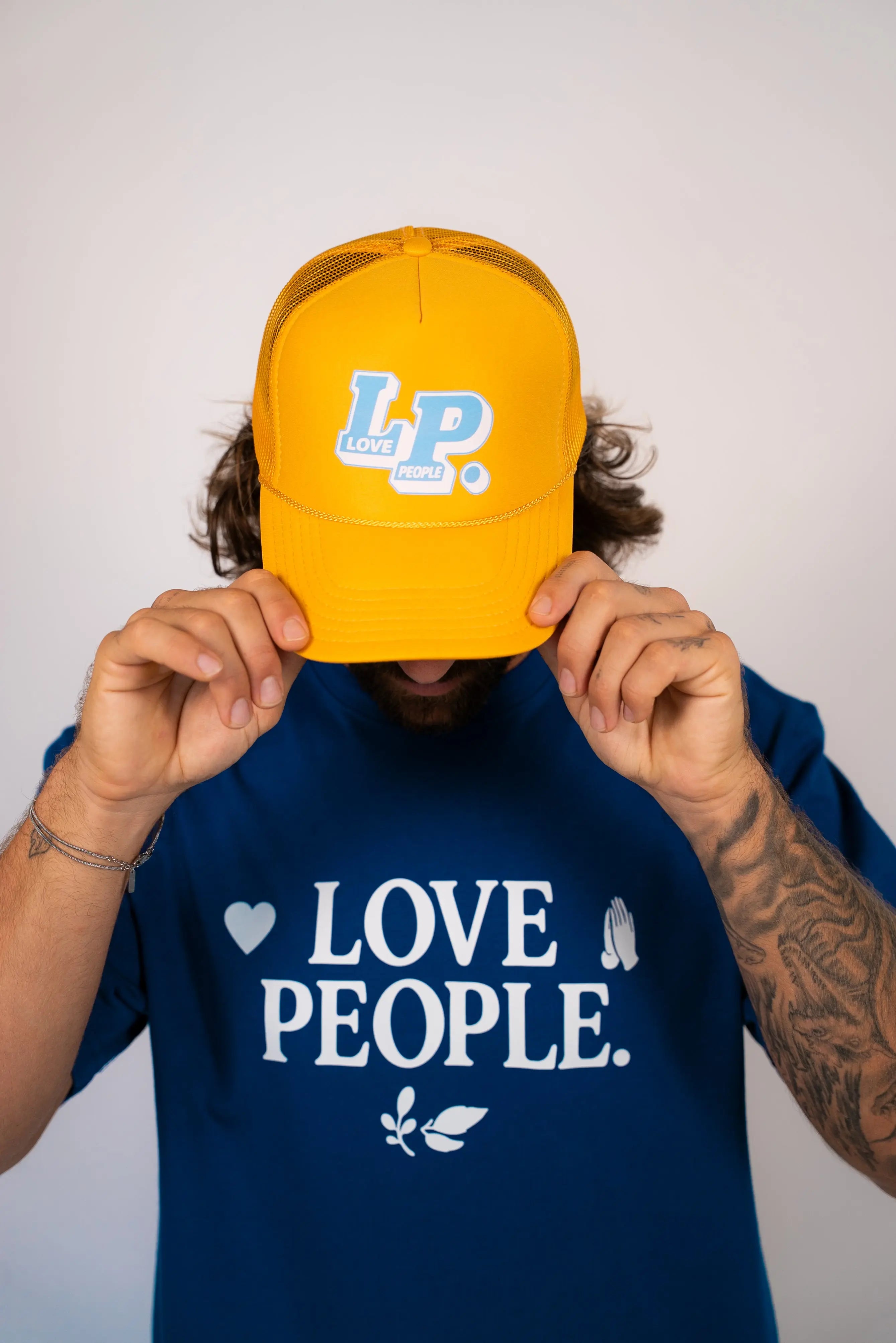 Sleek five-panel Foam Trucker Hat in, featuring a Blue “Love People” Logo. One-size snapback with adjustable strap ensures a perfect fit. Lightweight and durable—ideal for outdoor festivals, sunshine-filled days, or everyday wear